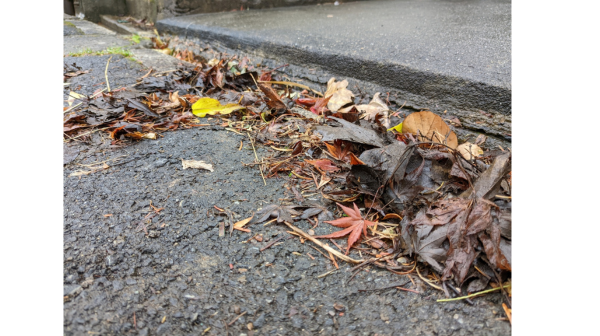 玄関廻りや庭の通路に落ち葉が積もると、雨でぬれた場所は滑りやすくなります。