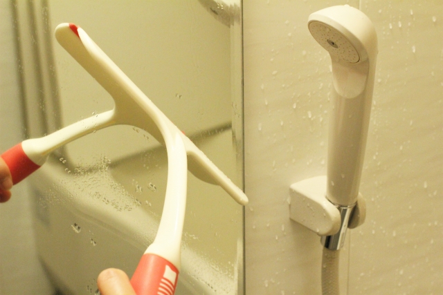 がとても重要です。入浴後は、壁や床に残った水滴をスクイージーでサッと落とすだけ